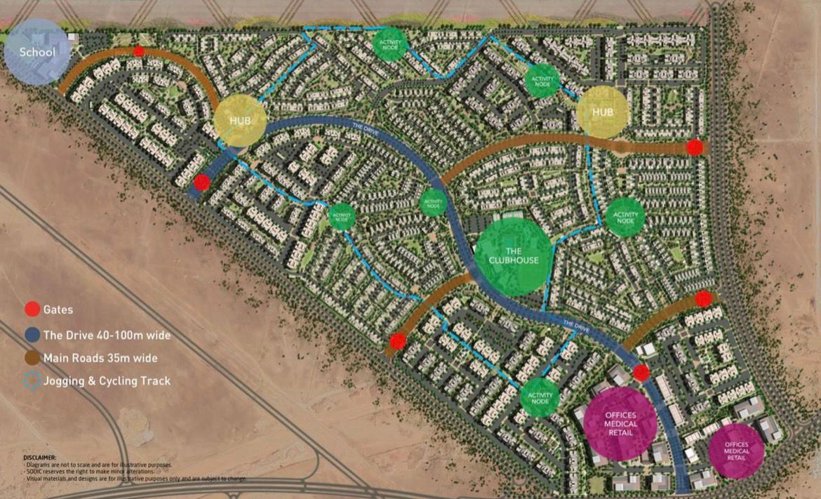 شارع العافية | مسارات الحدائق | نادي S (١٥ فدانًا) | قرية تجارية | منطقة الأعمال | ٢٠,٠٠٠ متر مربع من المرافق المائية